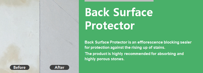 2. Shake the product well before use. 3. Apply the undiluted product evenly on the back and on the side of material using a brush. ※ For professional use, an airless spray is recommended. 4. Repeat the process until the surface is saturated. (3~4 times recommended) ※ Do not allow to dry on the surface if not being absorbed into the stone. 5. Completely remove all excess with a clean cloth. ※ The best result will be achieved after 24 hours from the treatment.